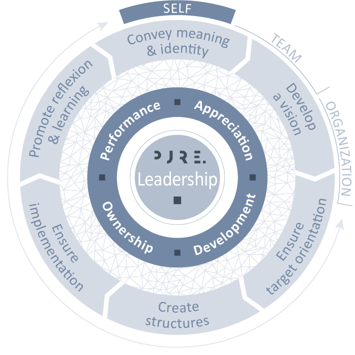 Values determine what is important to the individual, a group and the organization. No matter how they are expressed, values are a benchmark for individual action. At the same time, they are important building blocks of a corporate culture when lived collectively. They essentially determine the “character” of the organization. The 4 core values of the PURE leadership model are appreciation, responsibility, development and performance.